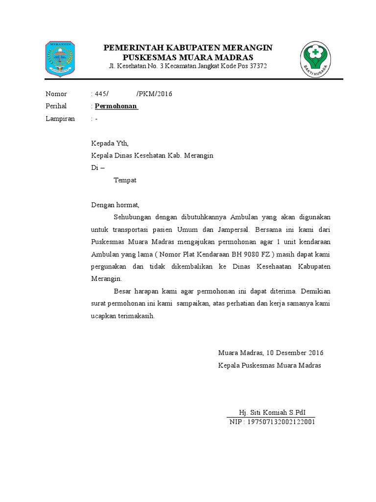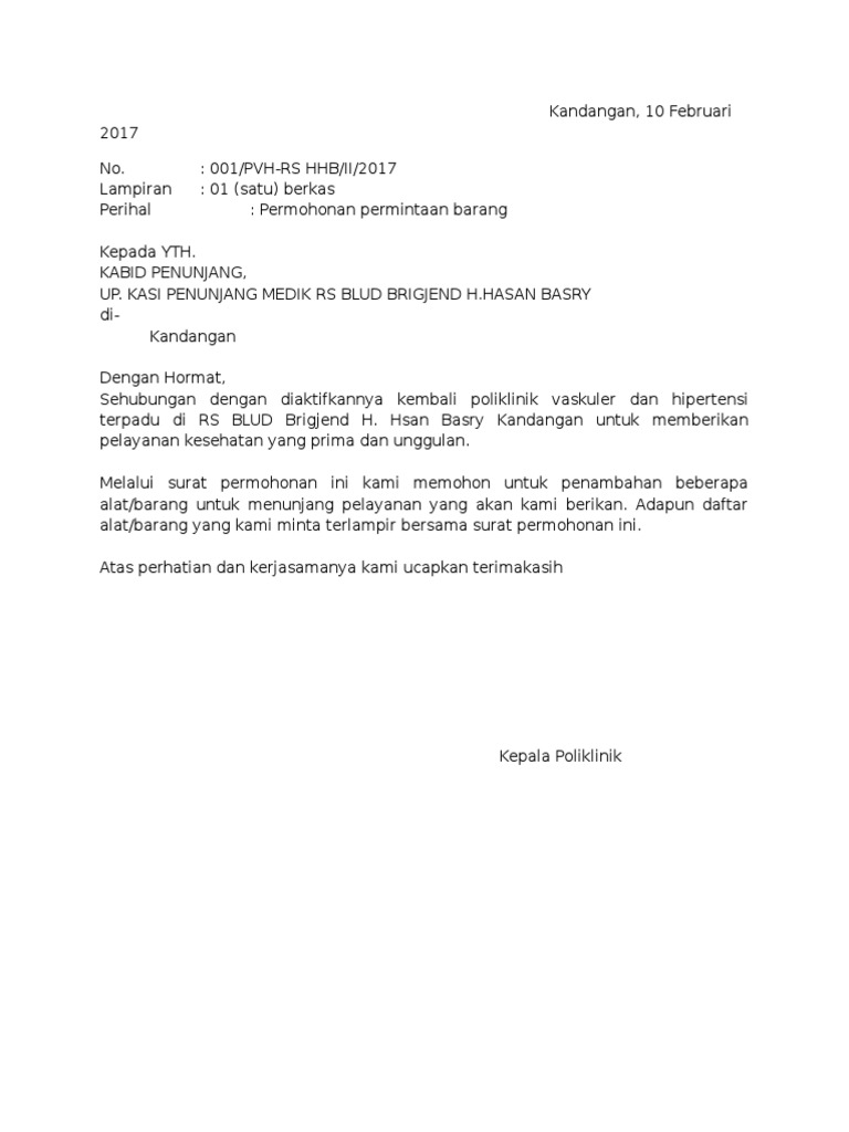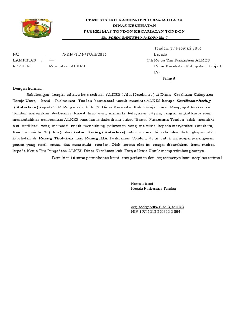Contoh surat permohonan alat medis. Maka kami ingin meminjam perlengkapan seperti mobil ambulans tenaga medis serta alat-alat yang dapat membantu kelancaran acara ini. Surat permohonan bantuan tenaga medis - Surat resmi biasanya banyak digunakan bagi kepentingan instansi organisasi kepentingan dinas atau kepentingan antar instansi. Sementara surat permohonan pribadi atau perseorangan maka kita tidak akan menemukan komponen kop surat.
