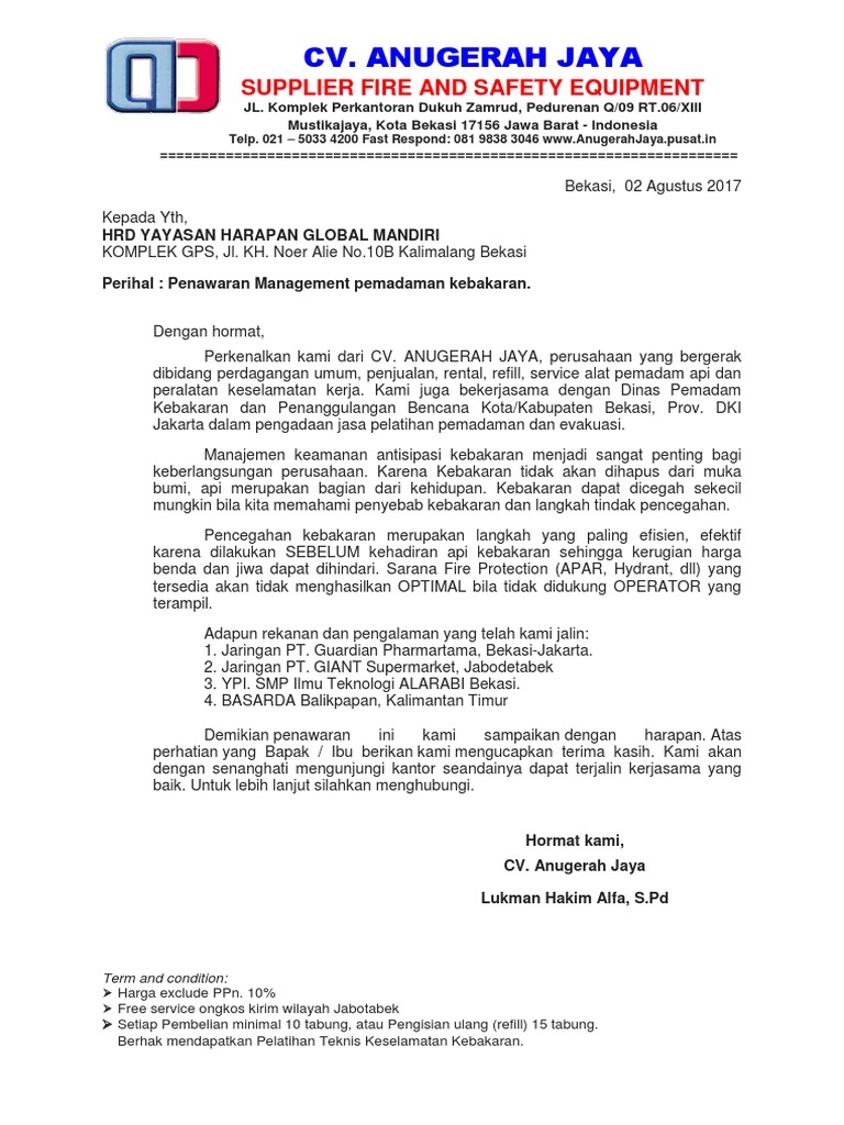 Contoh surat permohonan alat pemadam kebakaran. Mengingat Undang Undang No. Di bawah ini salah satu contoh rekomendasi alat proteksi kebakaran yang kami urus. Kendala-kendala ini tidak dapat diselesaikan sendiri tanpa bantuan orang lain.