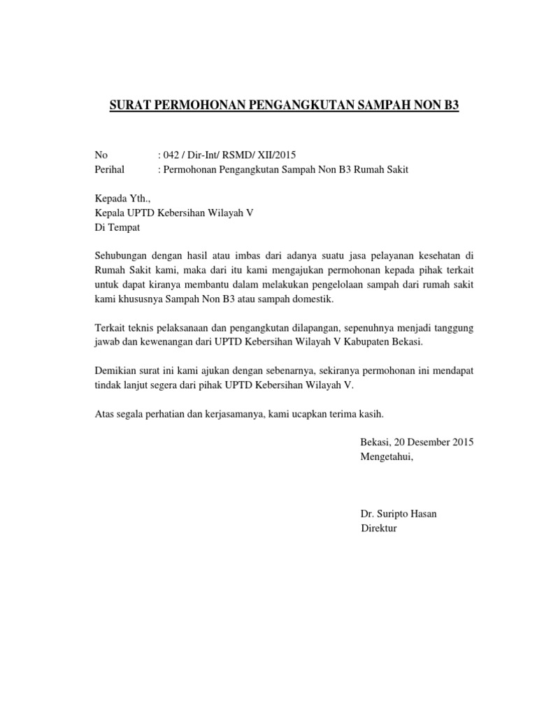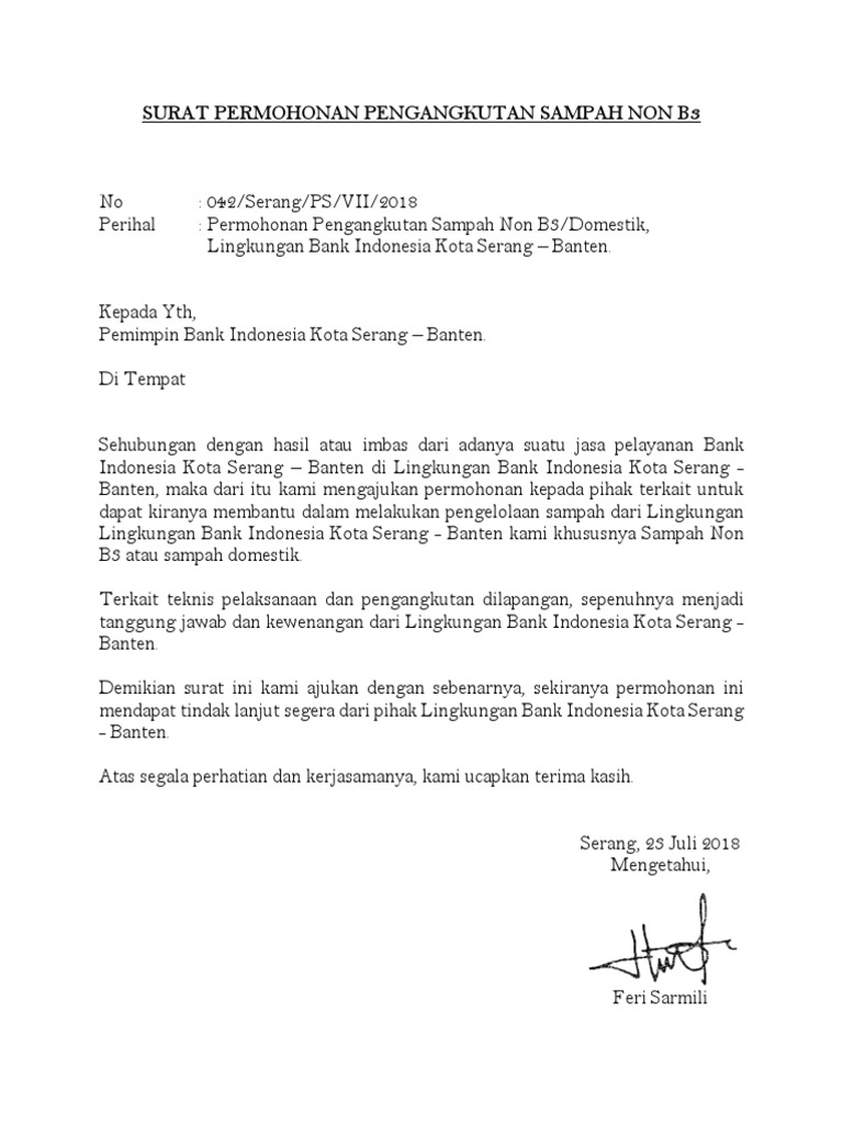 Contoh surat permohonan bak sampah. Semoga tulisan ini bisa bermanfaat bagi siapa saja yang membutuhkannya. Kumpulan judul contoh skripsi hukum perdata. Surat permohonan dan proposal gerobak sampah.