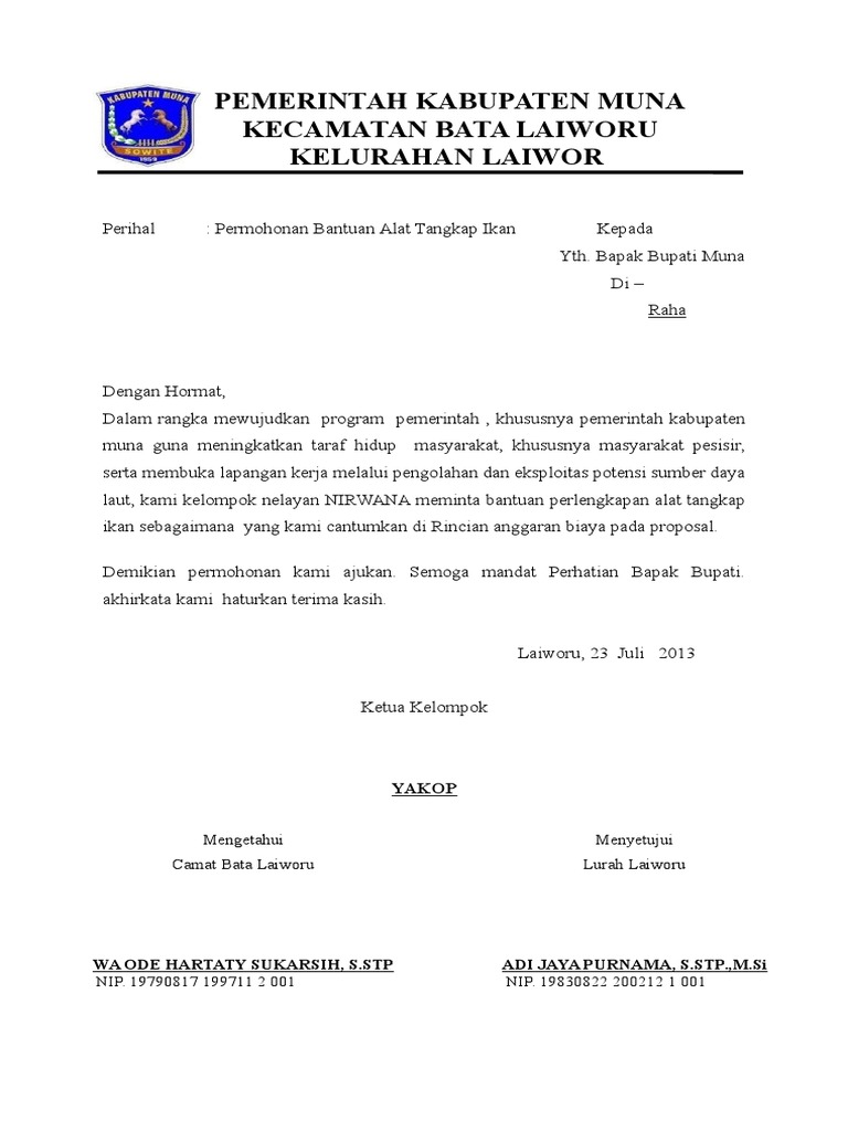 Contoh Surat Permohonan Bantuan Alat Kerja