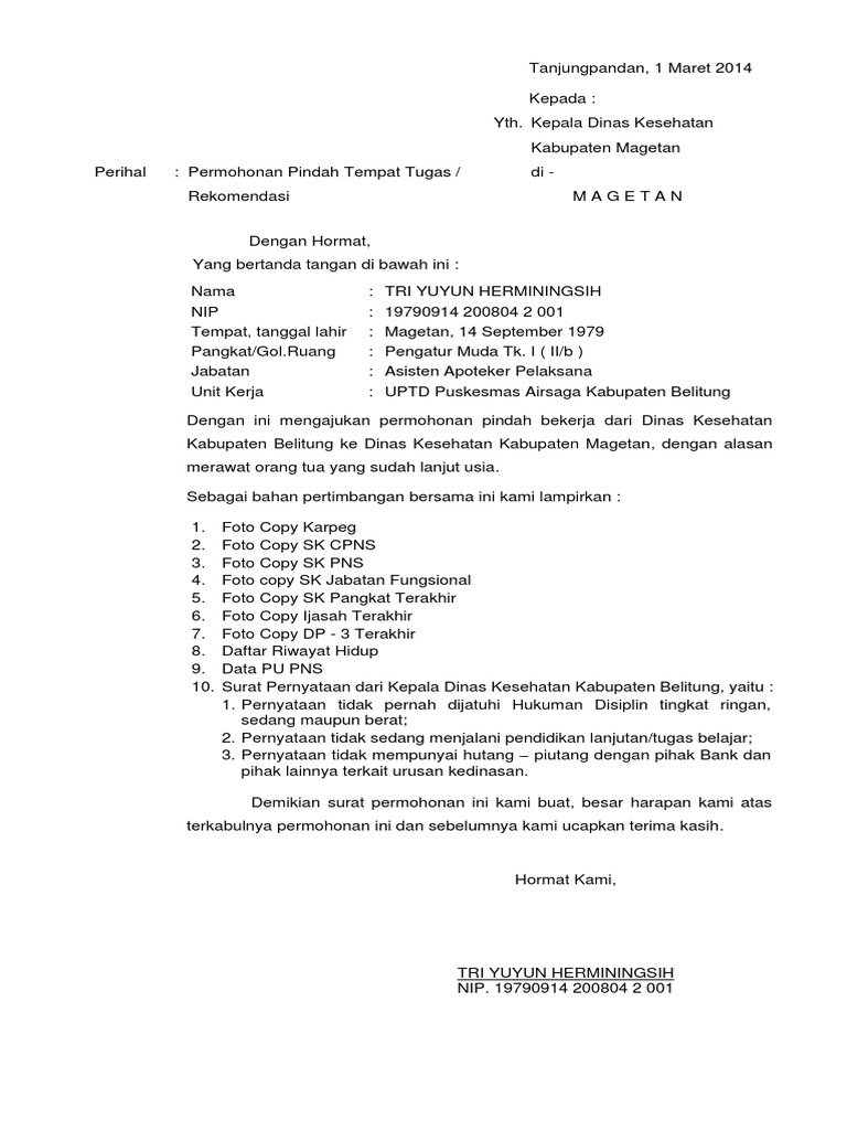 Contoh Surat Permohonan Dinas. Puji syukur kehadirat Allah yang. Surat Permohonan Bantuan Dana.