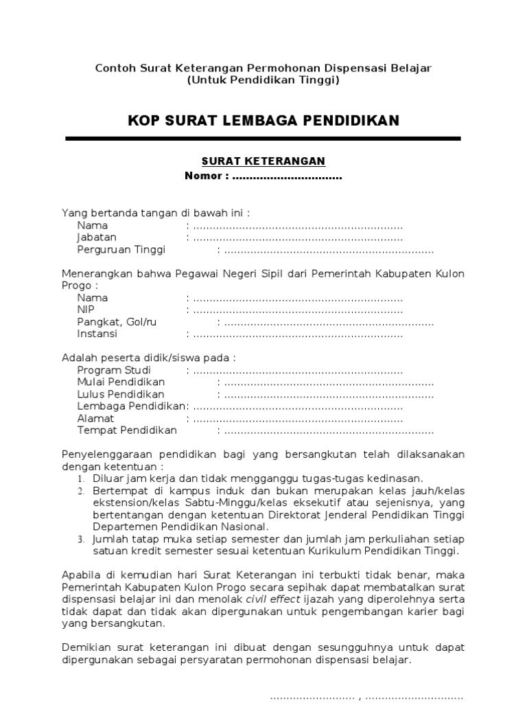 Contoh surat permohonan dispensasi jam kerja untuk kuliah. 022 6866953 Cimerang Padalarang Kab. Maka dari itulah surat dispensasi dipergunakan untuk menyatakan bebas dari kewajiban. The collection that comprising chosen picture and the best among others.