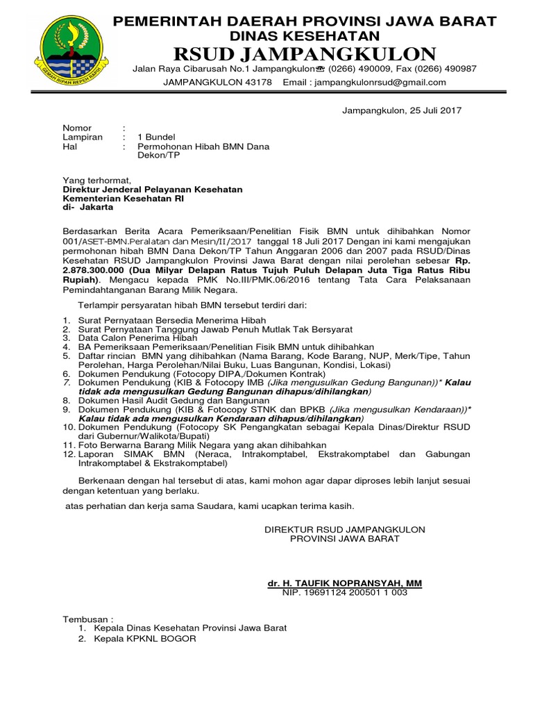 Contoh Surat Permohonan Hibah Barang Milik Negara