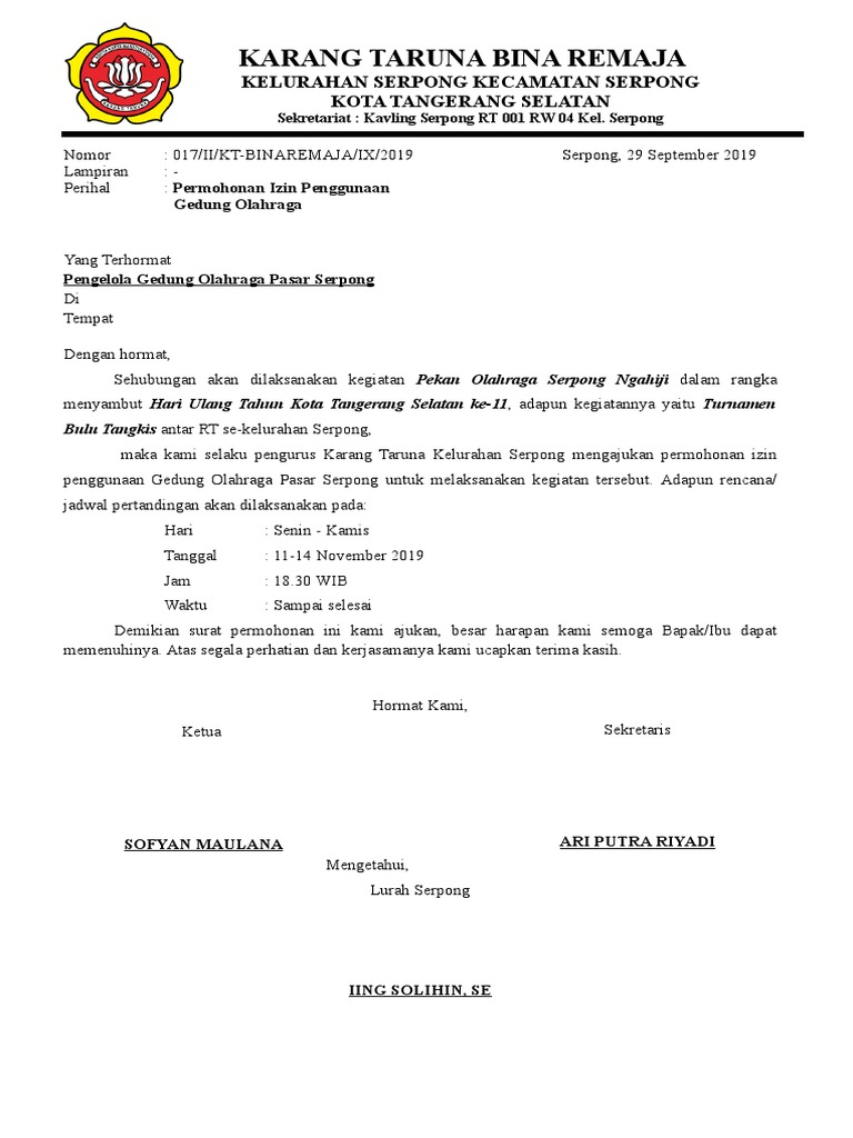 Surat Balasan Permohonan Izin Pinjam Kelas. Contoh surat permohonan sewa gedung millquarry pabrik n 1727 htmlContoh Surat Ijin Tempat CONTOH SURAT IJIN TEMPAT KOP SURAT STMIK DUTA BANGSA SURAKARTA No 01 Departemen Jenis Kegiatan NamaTembusan Surat Izin Peminjaman Gedung Contoh Surat Permohonan illiyya contoh surat permohonan sewa gedung PERJANJIAN SEWA GEDUNG Yang bertanda tangan. Baik itu surat yang dipergunakan oleh perusahaan instansi pemerintahan lembaga organisasi dan perseorangan.
