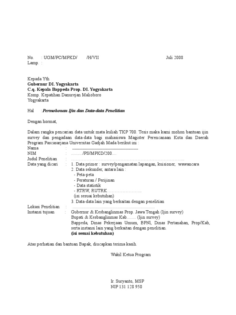 Untuk itu dalam posting ini saya berikan beberapa contoh surat yang dibutuhkan. Kepala Dinas Perizinan Kota Yogyakarta. Formulir untuk permohonan Izin Penelitian berupa surat permohonan Izin Penelitian kepada Walikota Yogyakarta Cq.