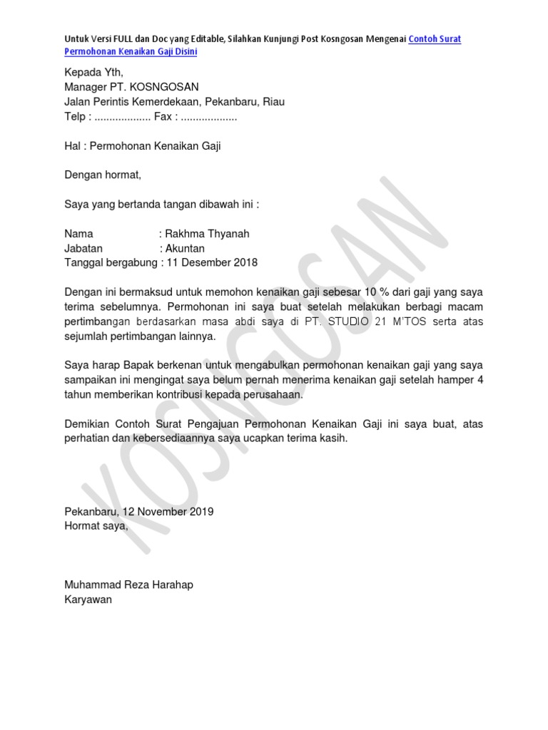 Itulah contoh surat permohonan kenaikan gaji seluruh karyawan yang dapat admin kumpulkan. HERMAN ADAN Jabatan. The collection that consisting of chosen picture and the best.