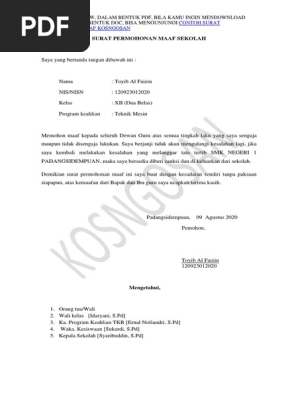 Apalagi untuk hanya sekedar meminta maaf kepada orang terdekat Anda dapat mengungkapkan rasa penyesalan Anda dengan gaya bahasa yang lebih santai. Contoh Surat Permohonan Dalam kehidupan sehari-hari sering kali kita dihadapkan dengan suatu situasi yang tidak dapat dikerjakan dengan sendiri dan harus memerlukan bantuan pertolongan dari orang lainAgar permohonan tersebut dikabulkan maka kita harus membuat sebuah surat permohonan yang ditujukan kepada pihak yang bersangkutan. Admin blog Dapatkan Contoh 2019 juga mengumpulkan gambar-gambar lainnya terkait contoh surat permohonan maaf kepada orang tua dibawah ini.