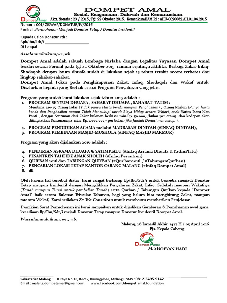 Demikian surat ini kami buat atas perhatian dan kerjasamanya kami ucapkan terima kasih. Contoh surat permohonan donatur tetap ikatan remaja masjid raya bitrul tajriyan irmitri kecamatan pangkalan susu sekretariat jalan masjid. Contoh Surat Permohonan Donatur Tetap Contoh surat permohonan donatur tetap ikatan remaja masjid raya bitrul tajriyan irmitri kecamatan pangkalan susu sekretariat jalan masjid.