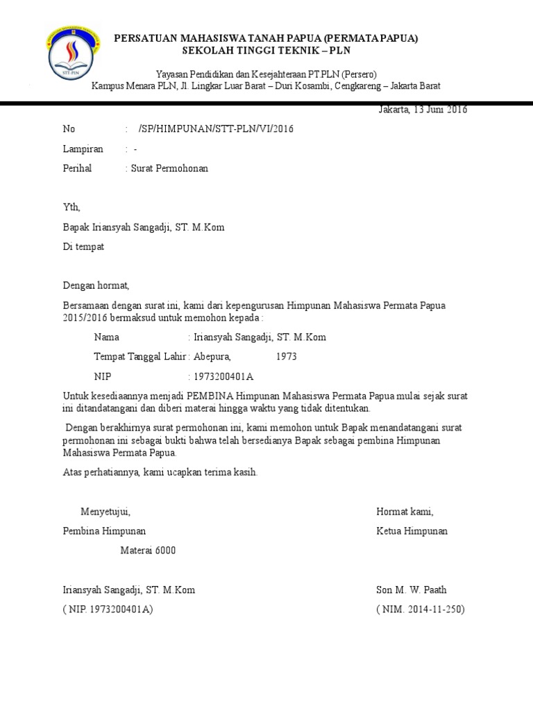 Contoh surat permohonan organisasi mahasiswa. Surat juga menunjukkan penghormatan kepada orang yang ditujukan. Contoh Surat Permohonan Sosialisasi 1 17 september 2015 tempat. Contoh surat lamaran magang adalah surat permohonan untuk melakukan kegiatan magang untuk keperluan pendidikan dan syarat kelulusan suatu sekolah universitas.