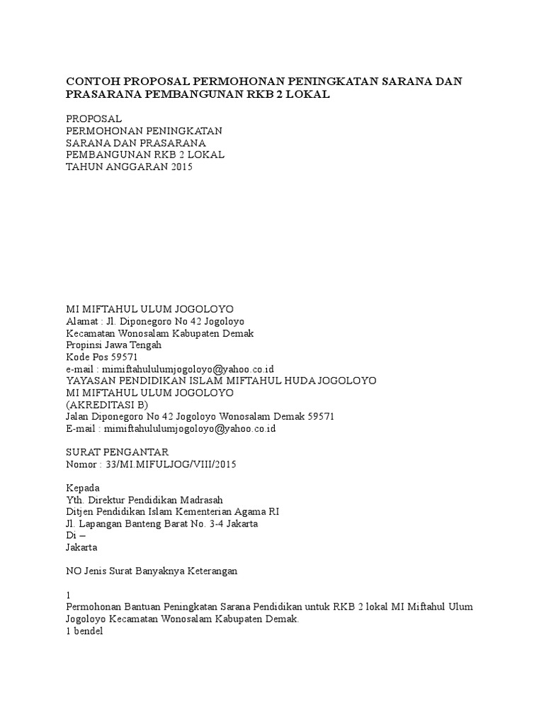 Foto copy surat ijin akte notaris kepemilikan tanah dan bangunan 8. Contoh Proposal Permohonan Bantuan Pengadaan Ruang Kelas Baru RKB dengan Format File Microsoft Words. Foto copy surat ijin operasional sekolah 7.