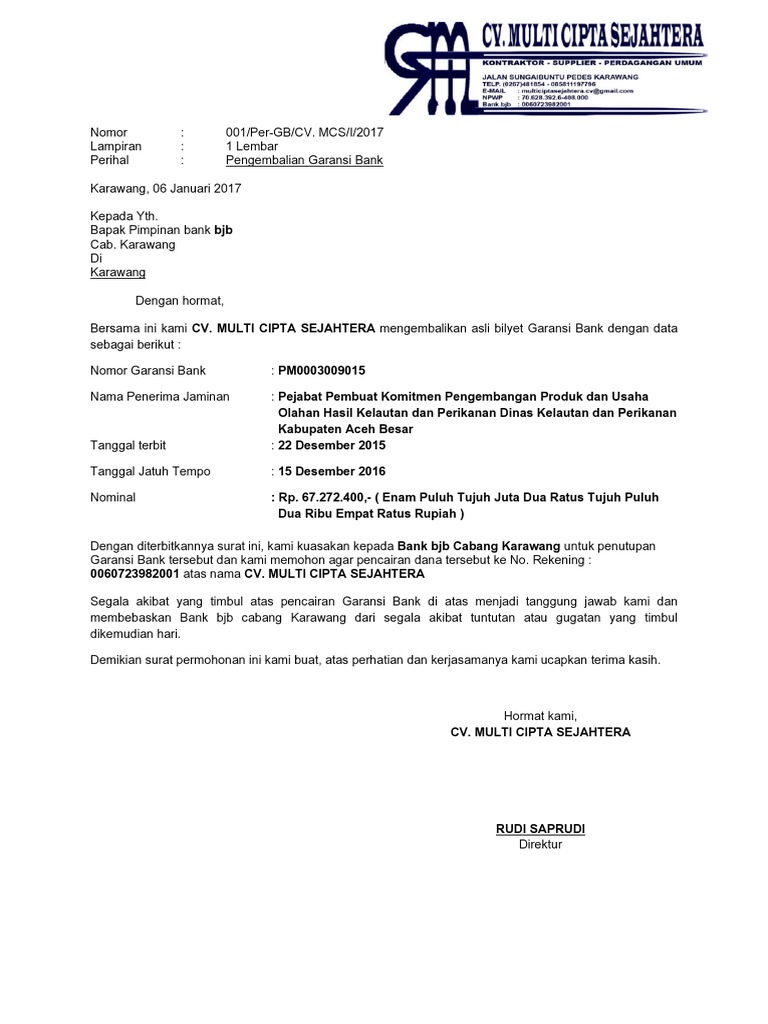 Format Jaminan BankGaransi Bank Lamp. Contoh surat permohonan pencairan garansi bank have a graphic from the other contoh surat permohonan pencairan garansi bank it also will feature a picture of a kind that may be seen in the gallery of contoh surat permohonan pencairan garansi bank. Singo Dimejo RT 03 RW 04 No.