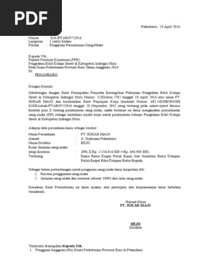 Contoh Surat Permohonan Pencairan Uang Muka Proyek