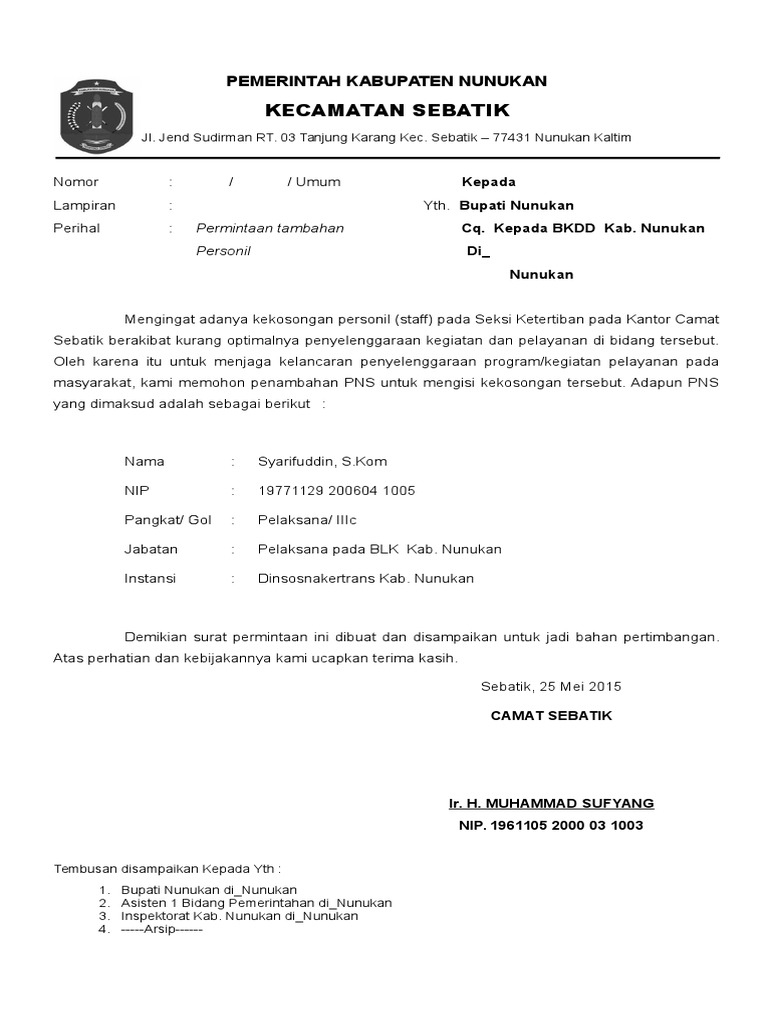Contoh Surat Permohonan Pengajuan Jabatan Fungsional