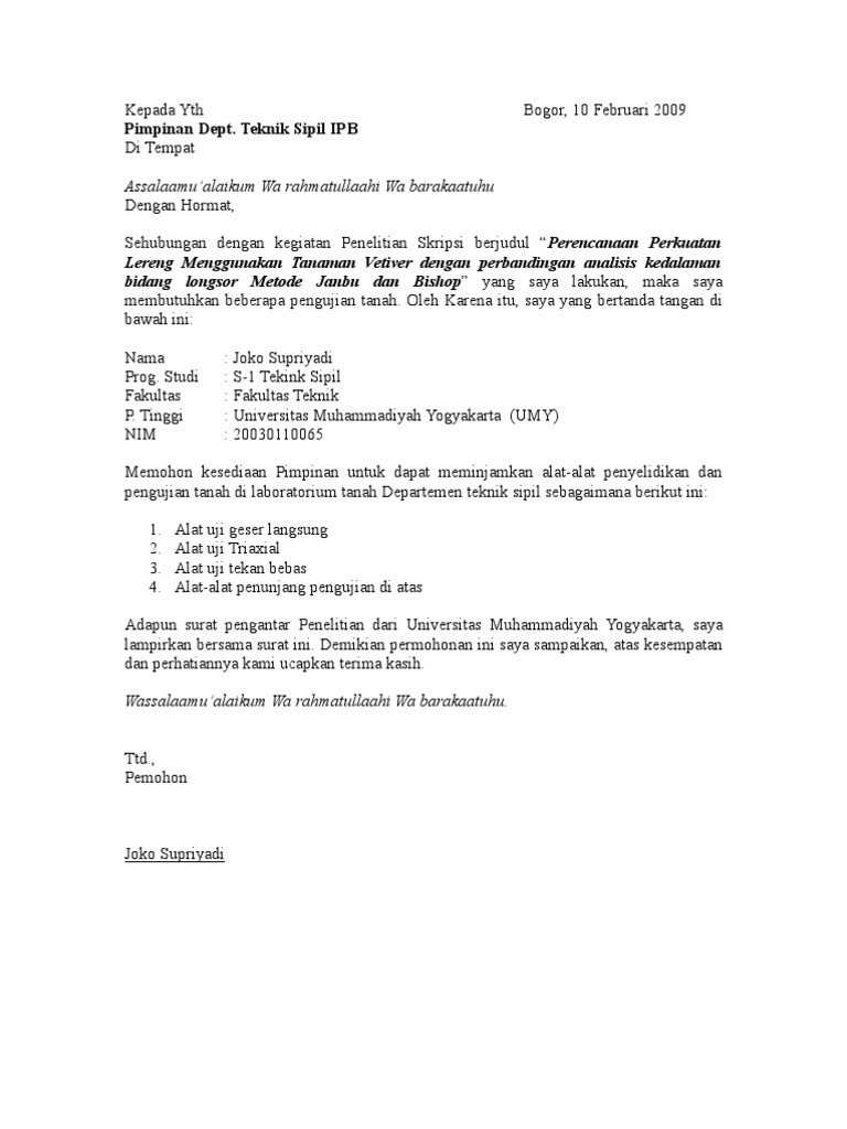 Contoh surat permohonan ijin penelitian Yogyakarta 02 Januari 2017 Nomor. Surabaya 7 April 2010 Hal. Berikut ini contoh surat permohonan pengambilan data dan informasi di sebuah perusahaan atau lembaga masyarakat dan sebagainya.