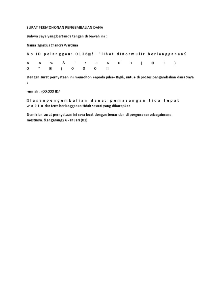 Contoh Surat Permohonan Pengembalian Dana Doc