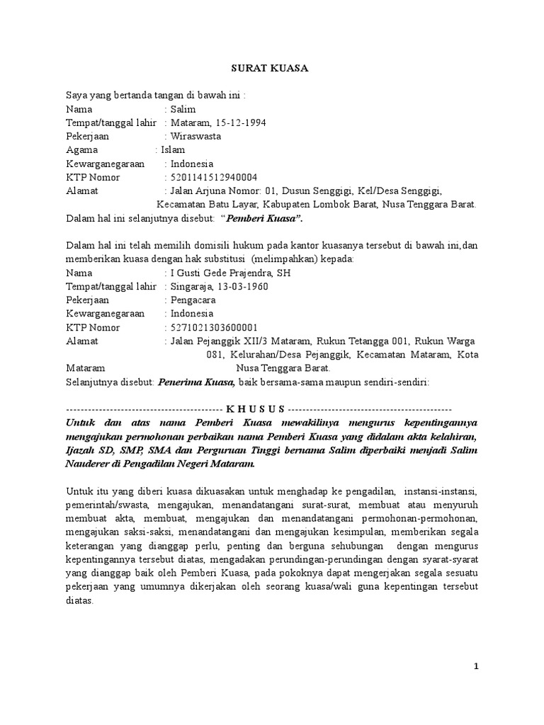 Contoh surat permohonan perbaikan akta kelahiran. Contoh kecilnya apabila di pemiliki rekening sakit terus membutuhkan biaya untuk berobat maka tentu harus orang lain yang membawa uang tersebut. Rosti Restiani 11 Desember 2018 pukul 1344. Contoh Surat Pernyataan Perbaikan Akta Kelahiran Sistem informasi penelusuran perkara.