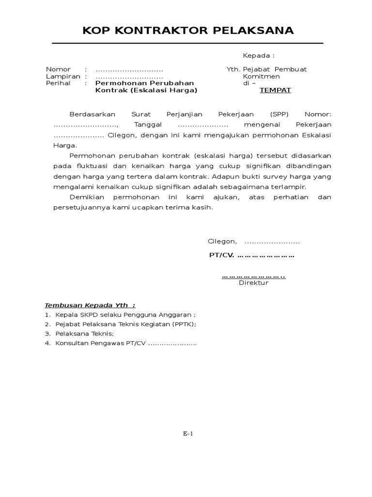 Contoh Surat Permohonan Perubahan Anggaran Skpd