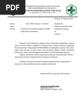 Admin dari blog Contoh Seputar Surat 2019 juga mengumpulkan gambar-gambar lainnya terkait contoh surat pemberitahuan perubahan struktur organisasi dibawah ini. Kepala UPTD Puskesmas DTP Cikaum. Itulah contoh format surat pemberitahuan perubahan struktur organisasi yang dapat admin kumpulkan.