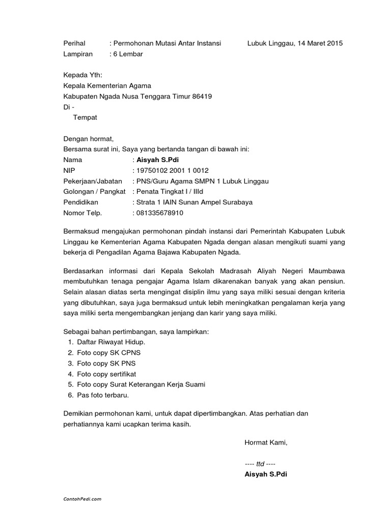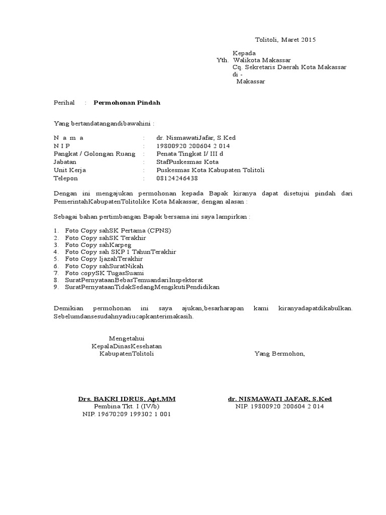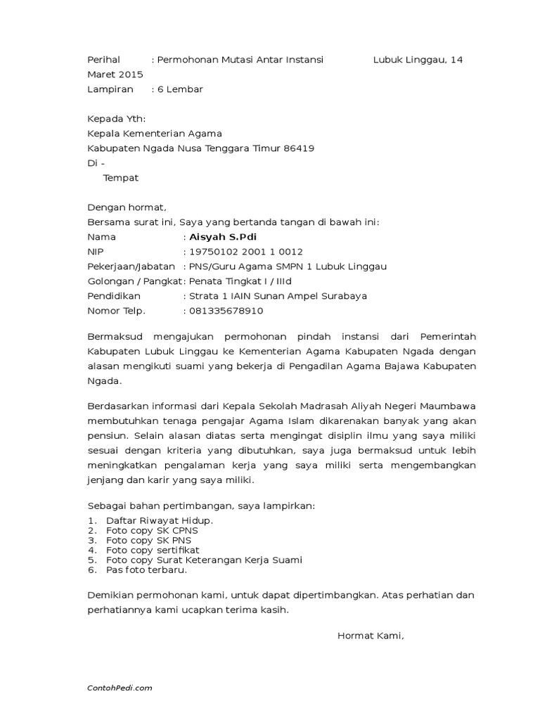 Contoh Surat Permohonan Pindah Pns Antar Kabupaten