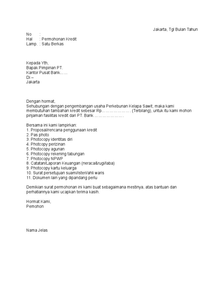 Contoh Proposal Pengajuan Pinjaman Modal Usaha Ke Bank There is document - Contoh Proposal Pengajuan Pinjaman Modal Usaha Ke Bank available here for reading and downloading. Pada dasarnya surat permohonan kredit adalah sebuah surat yang dibuat oleh pemohon untuk mengajukan permohonan pinjaman berupa uang kepada lembaga keuangan seperti bank guna untuk membiayai kegiatan usaha pemohon. Contoh Surat Orton Contoh Surat Permohonan Pinjaman Modal.