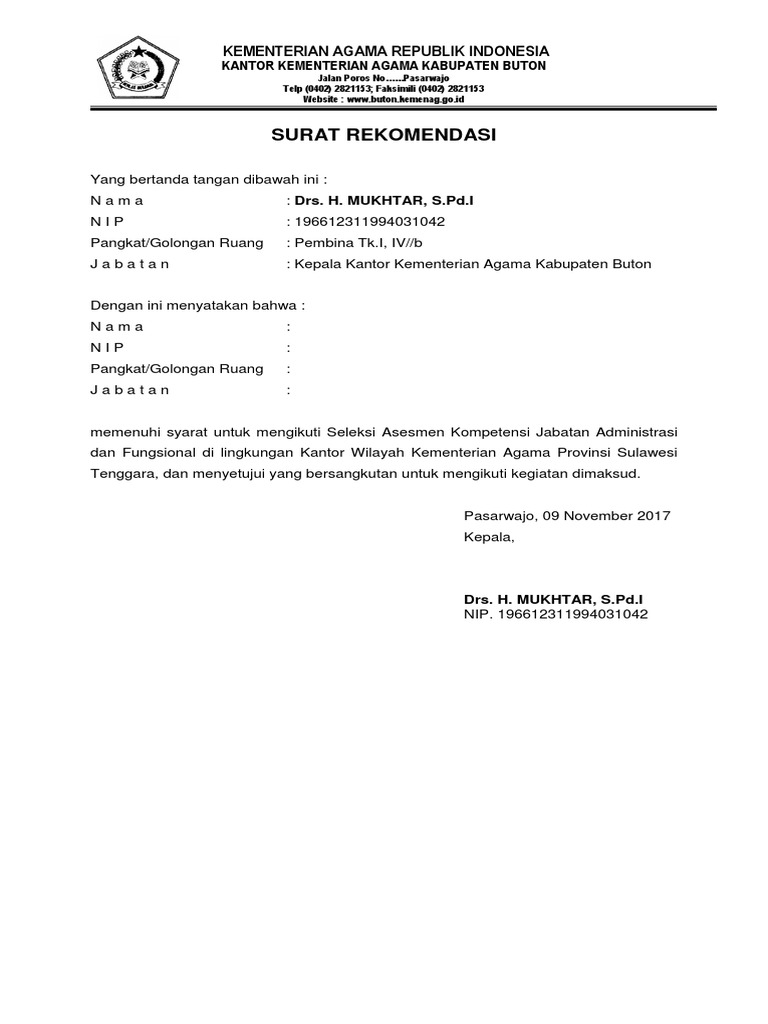 Kemenag Kabupaten Blitar Tolak Puluhan. Contoh Surat Rekomendasi Pembuatan Paspor dari Tempat Kerja Sekolah-Surat rekomendasi sangatlah bermanfaat bagi orang yang meminta rekomendasi dan juga bagi pihak yang memberi rekomendasi serta pihak ketiga yang akan menggunakannya. Panduan Contoh Surat Kontrak Kerja Tips Rumah dan Apartemen.