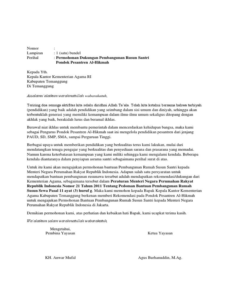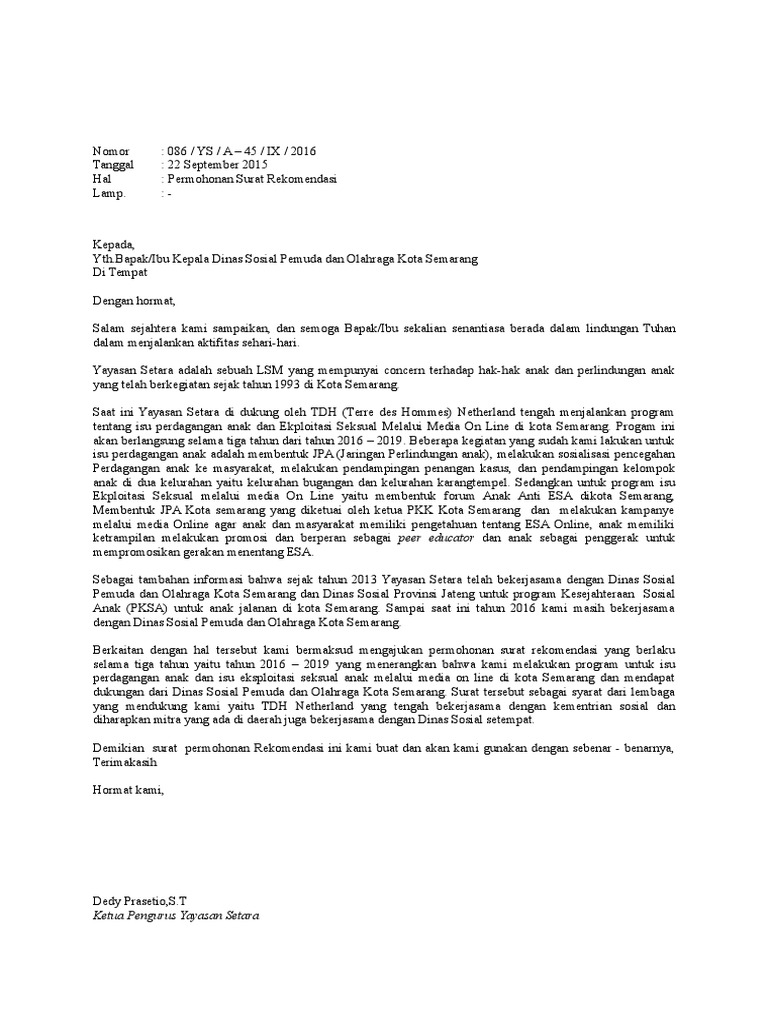 Contoh Surat Permohonan Rekomendasi Yayasan
