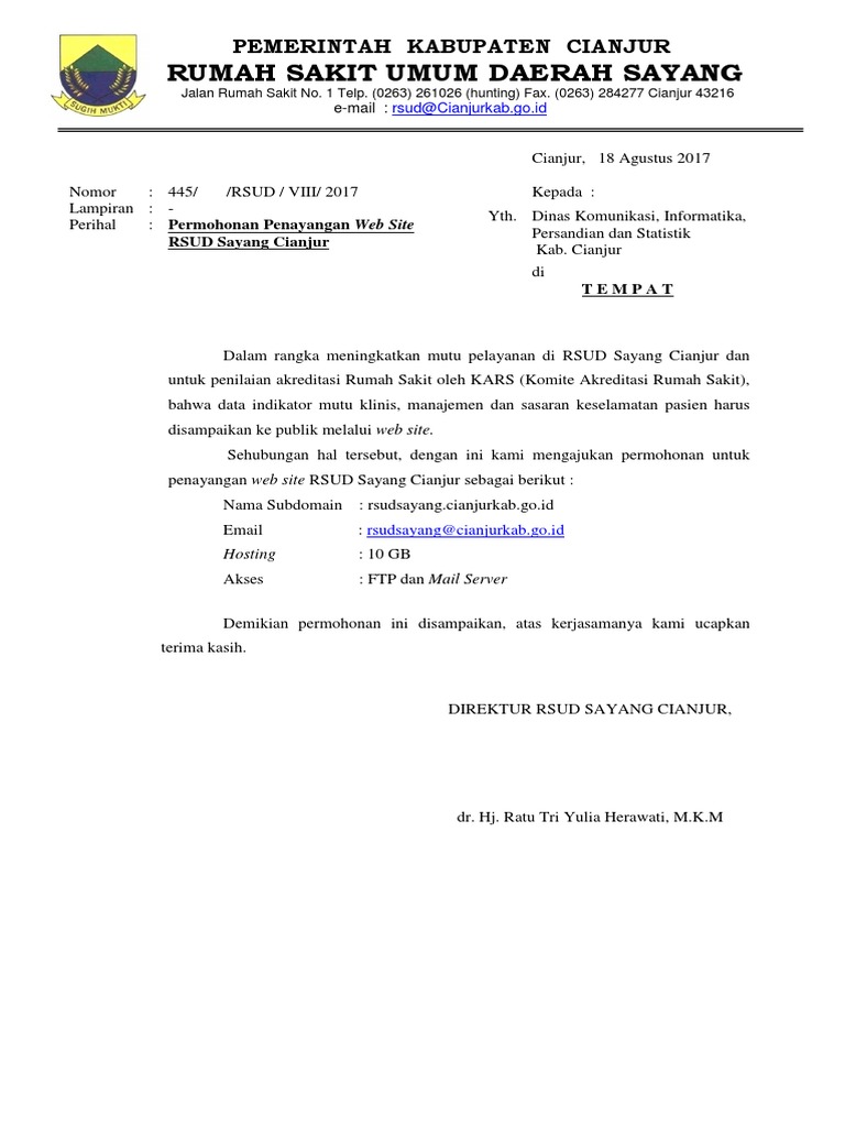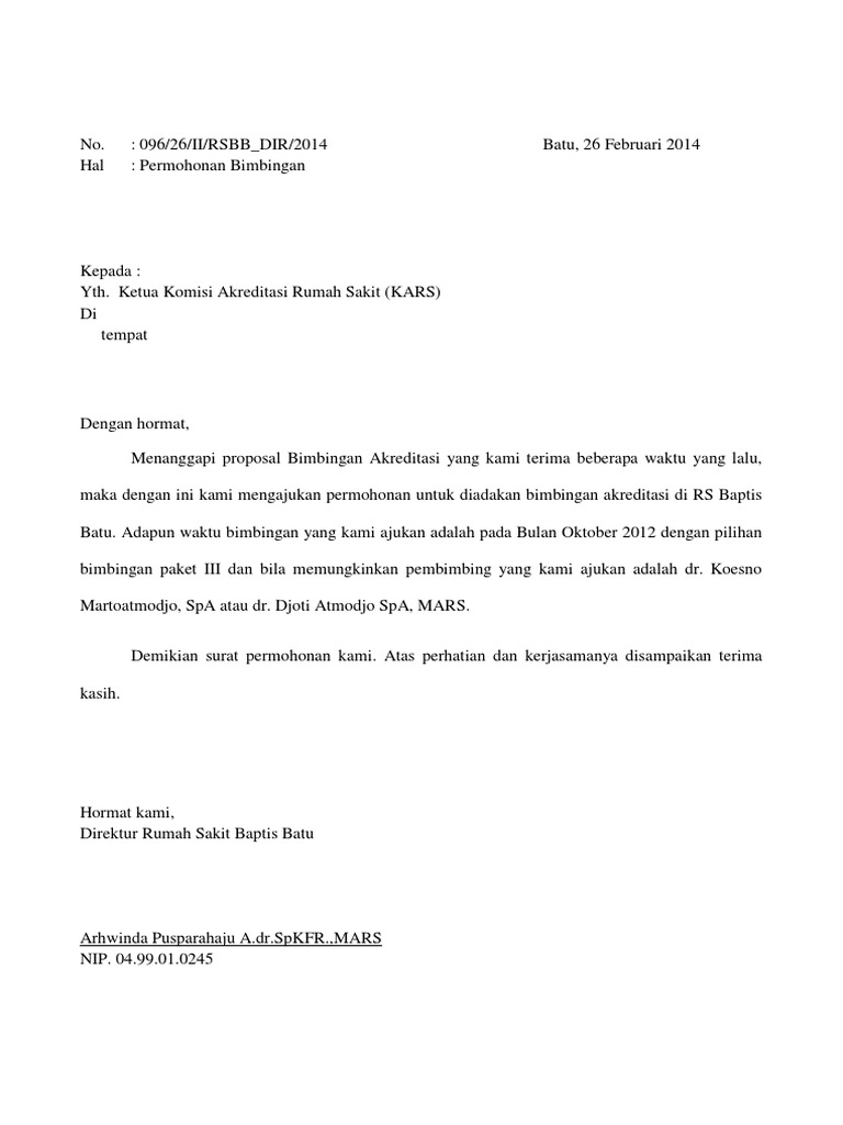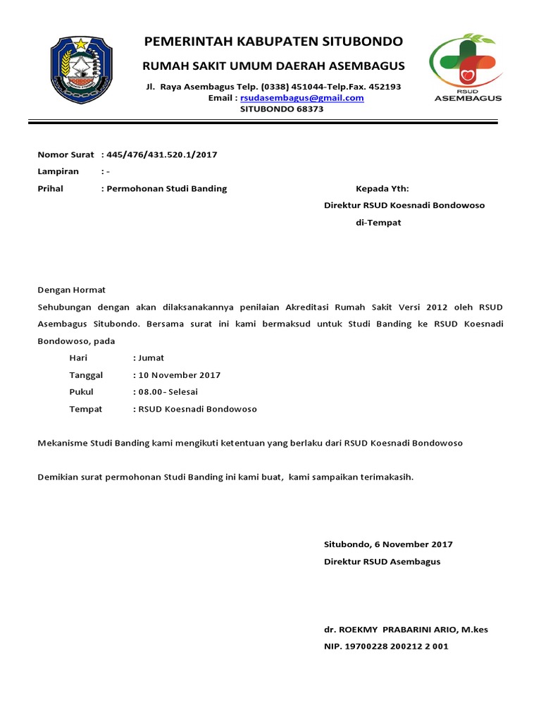 Contoh Surat Permohonan Studi Banding Rumah Sakit
