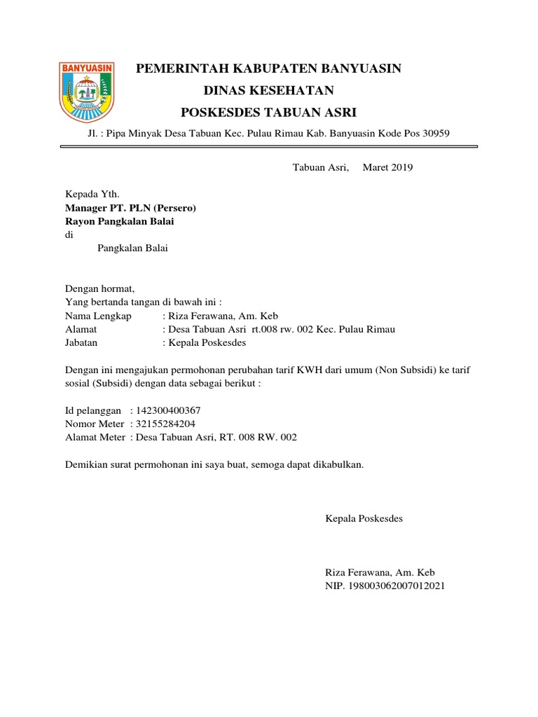 Contoh Surat Permohonan Subsidi Listrik Dari Desa