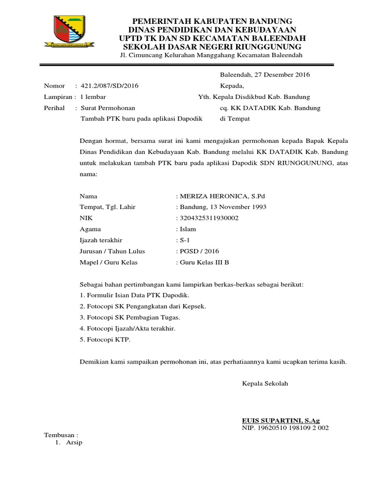 Contoh Surat Permohonan Tambah Ptk Di Dapodik Paud
