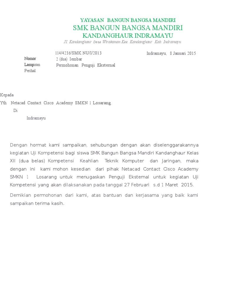 Yogyakarta 15 April 2020. Contoh surat permohonan penguji ujian produktif. Pedoman Uji Kompetensi Keahlian Tahun Pelajaran 20182019.