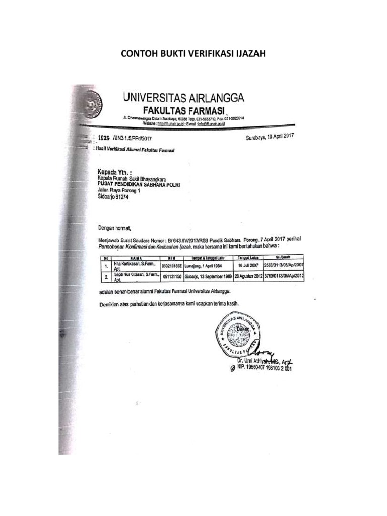 Contoh surat permohonan verifikasi ijazah untuk melaar cpns. Untuk sahabat yang ingin menverifikasi ijazah atau yang sering disebut dengan legalisir. Berdasarkan Surat Edaran oleh KEMENRISTEK DIKTI no 5478AP1SE2017 pelaporan Pangkalan Data Perguruan Tinggi berlaku untuk.