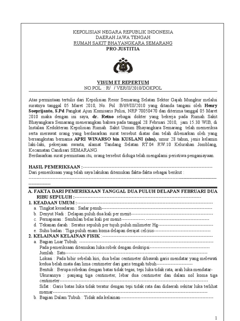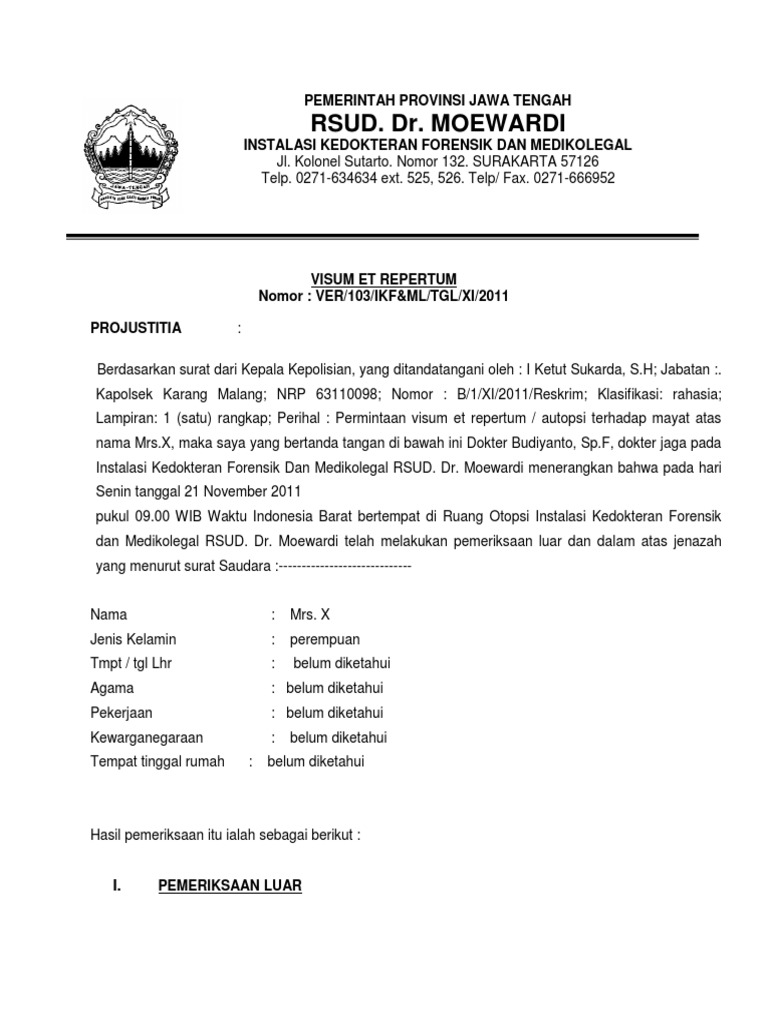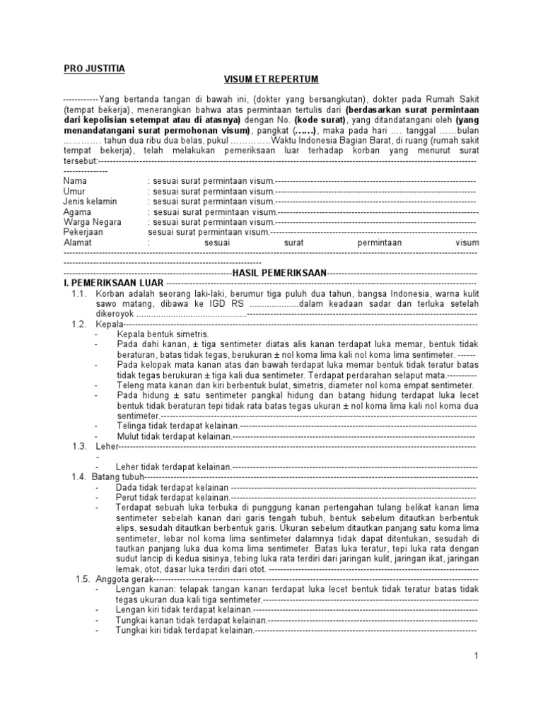 By posted on may 11 2020. Surat Visum et Repertum Perlukaan. Pemeriksaan luar dan dalam 4.