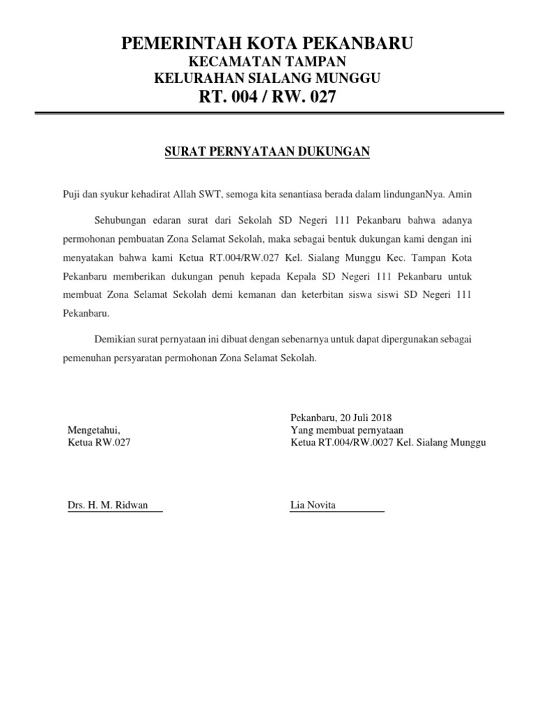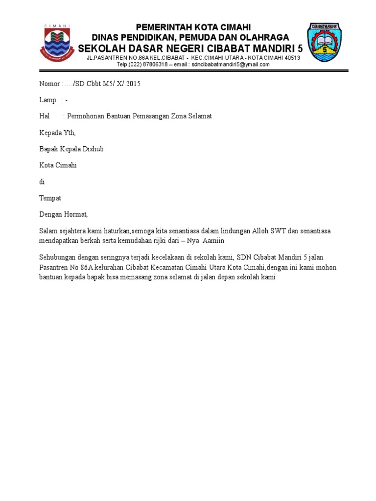 Contoh Surat Permohonan Zona Selamat Sekolah
