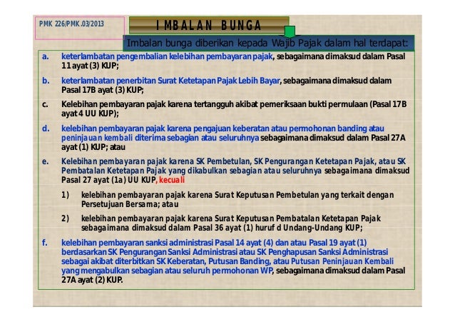 Adapun imbalan bunga 2 per bulan dan maksimal. PETUNJUK PENGISIAN SURAT KEPUTUSAN PEMBERIAN IMBALAN BUNGA Nomor 1 Nomor 2 dan 3 Nomor 4 Nomor 5 Nomor 6. Imbalan bunga juga diberikan terhadap pembayaran lebih Surat Tagihan Pajak yang telah diterbitkan berdasarkan Pasal 14 ayat 4 dan Pasal 19 ayat 1 sehubungan dengan diterbitkannya Surat Ketetapan Pajak Kurang Bayar atau Surat Ketetapan Pajak Kurang Bayar Tambahan yang memperoleh pengurangan atau penghapusan sanksi administrasi berupa denda atau bunga.