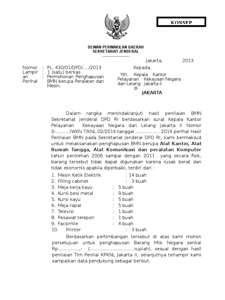 Berikut informasi sepenuhnya tentang format surat permohonan lelang ke kpknl. Bagian Pertama Permohonan Lelang Pasal 1 1 Permohonan Lelang. Contoh surat permohonan lelang bmn ke kpknl 73 ttg jabatan fungsional umum di kementerian kesehatan ebook download as pdf file pdf text file txt or read book online.