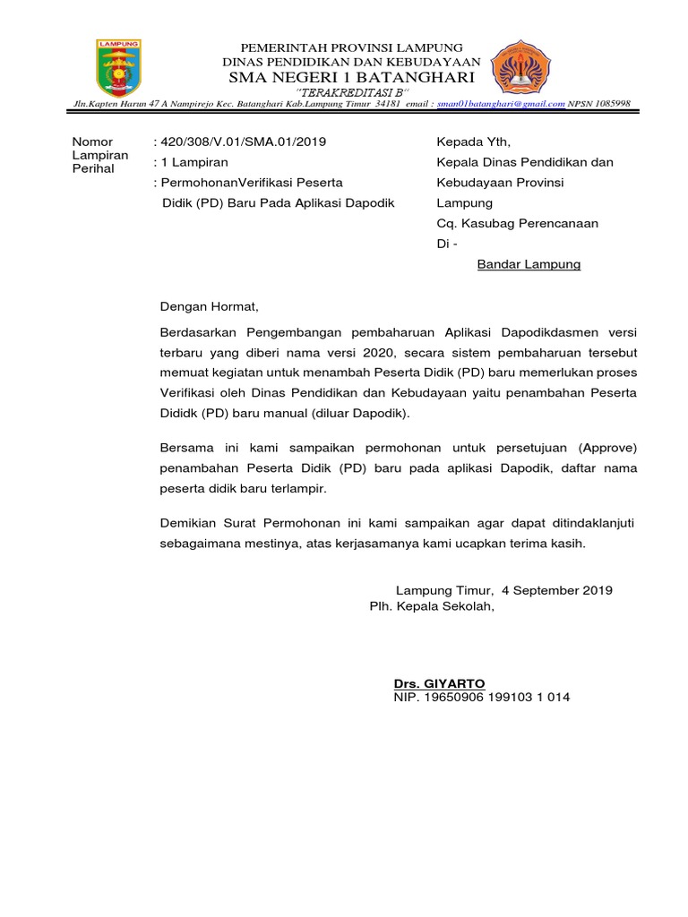 Panitia lcc smp tahun 2018. Contoh Surat Permohonan Approval Peserta Didik Panduan Aplikasi Verval Gtk Kementerian Pendidikan Dan Kebudayaan. Download Surat Permohonan Tambah PTK Baru format doc Demikian kami sampaikan salah satu contoh konsep Surat Permohonan Tambah PTK Baru Pada Dapodik 2018 yang diajukan ke dinas.