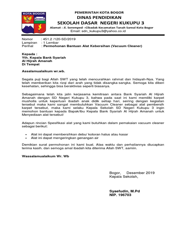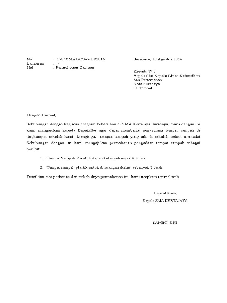 The collection that consisting of chosen picture and the best among others. Contoh Surat Permohonan Bantuan Alat Kebersihan have a graphic from the otherContoh Surat Permohonan Bantuan Alat Kebersihan It also will feature a picture of a kind that could be seen in the gallery of Contoh Surat Permohonan Bantuan Alat Kebersihan. Surat resmi adalah surat yang dikirimkan oleh kantor pemerintah atau swasta kepada kantor pemerintah atau dikirimkan oleh perseorangan kepada kantor.