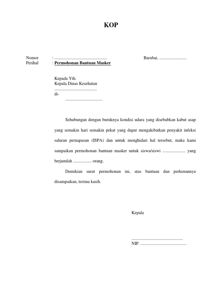 Surat Permohonan Bantuan Masker Doc