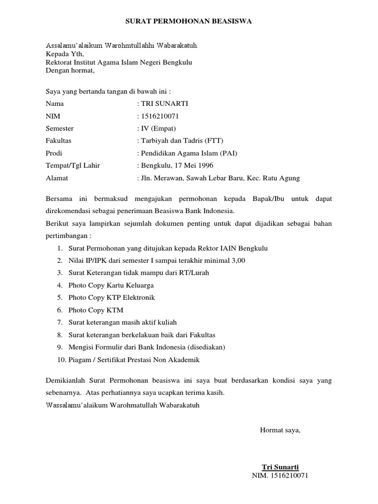 Surat permohonan beasiswa baznas doc. Berbagai krisis yang terjadi merupakan tanggung jawab generasi muda untuk merubahnya. Surat Keterangan Tidak Mampu dari RTKepala DesaLurah asli. Fatatin Nihaiyah Alamat.