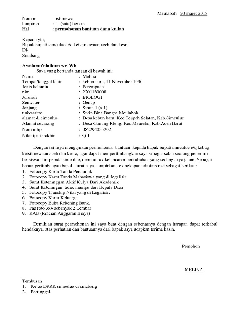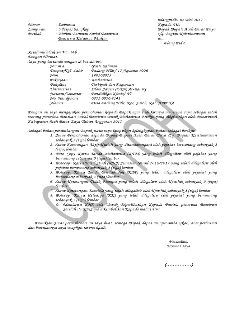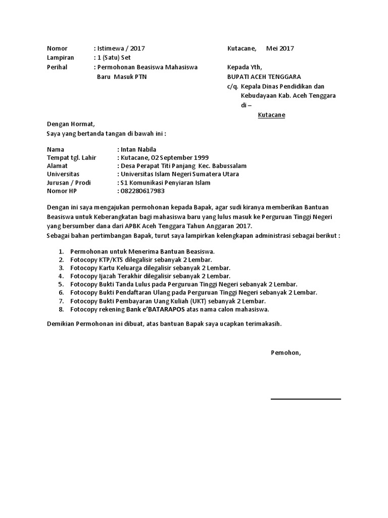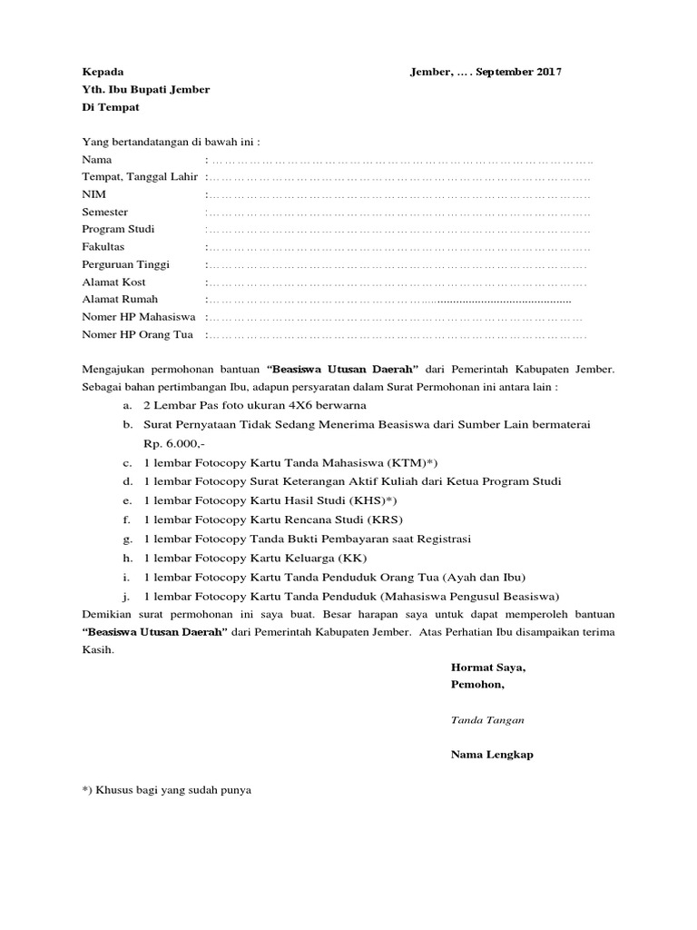 Surat Permohonan Beasiswa Kepada Bupati Pdf