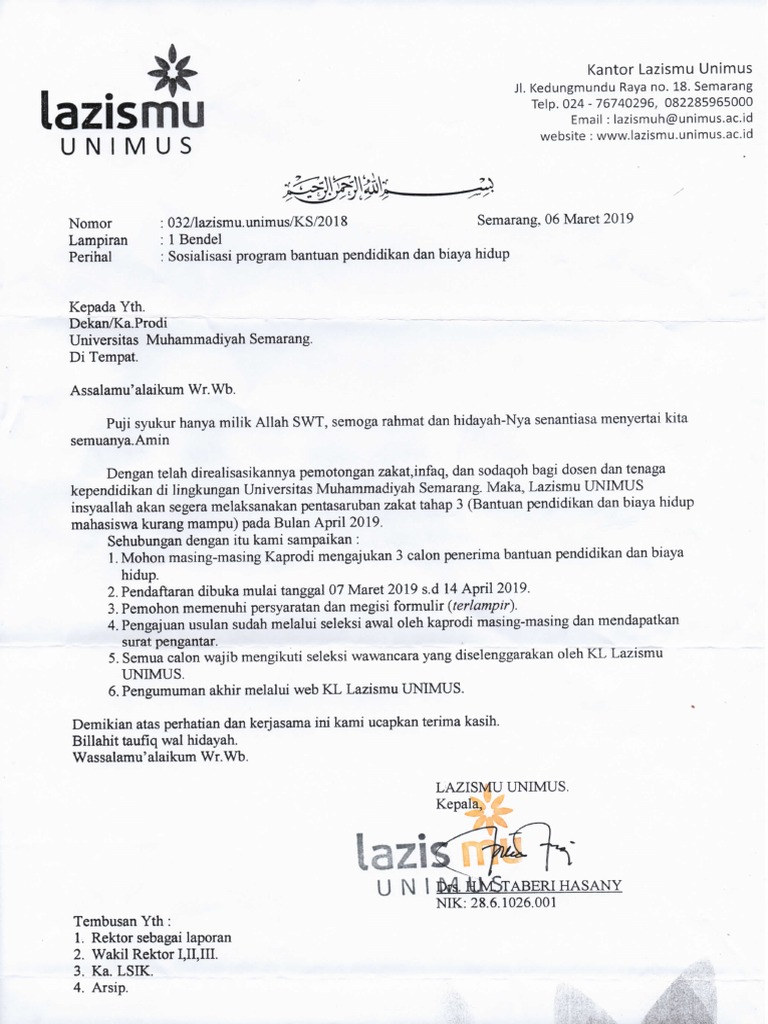 Surat permohonan beasiswa kepada rektor. Selamat datang di website resmi Universitas Muhammadiyah Semarang Unimus. Ijazah Surat Keterangan Lulus SKL asli dan nilai raport semester 1 5 nilai rata-rata minimal 70 atau 280 dilegalisasi tiap semester.