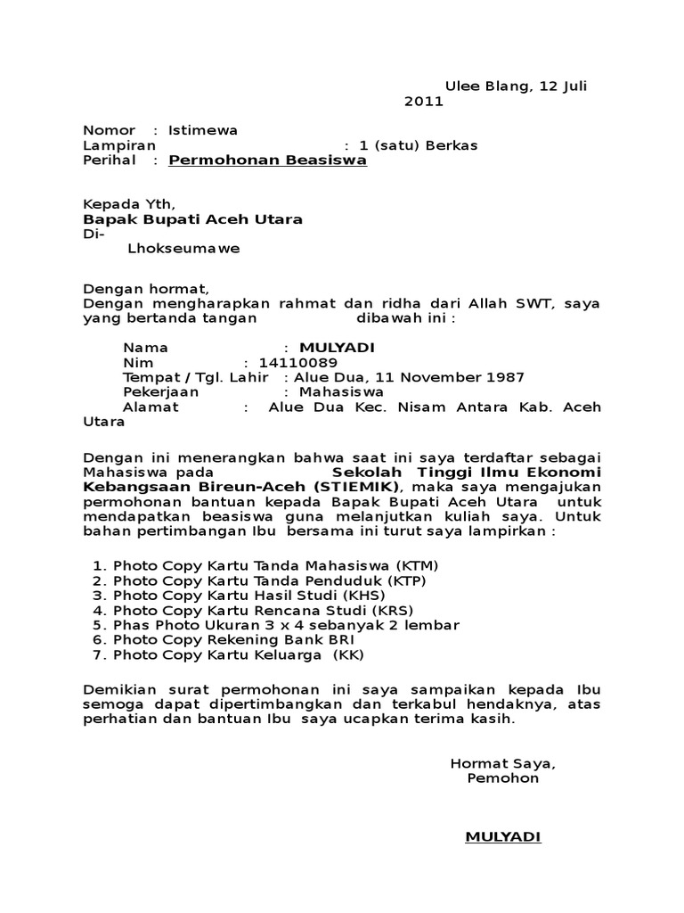 Surat Permohonan Beasiswa Pdf