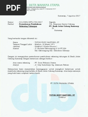 Surat Permohonan Buka Rekening Barudocx Sekian yang admin bisa bantu mengenai surat permohonan pembukaan rekening bank mandiri. Bersama surat ini kami atas nama CV. Contoh Surat Permohonan Pembukaan Rekening Perusahaan PTCV Surat Permohonan Pembukaan Rekening.