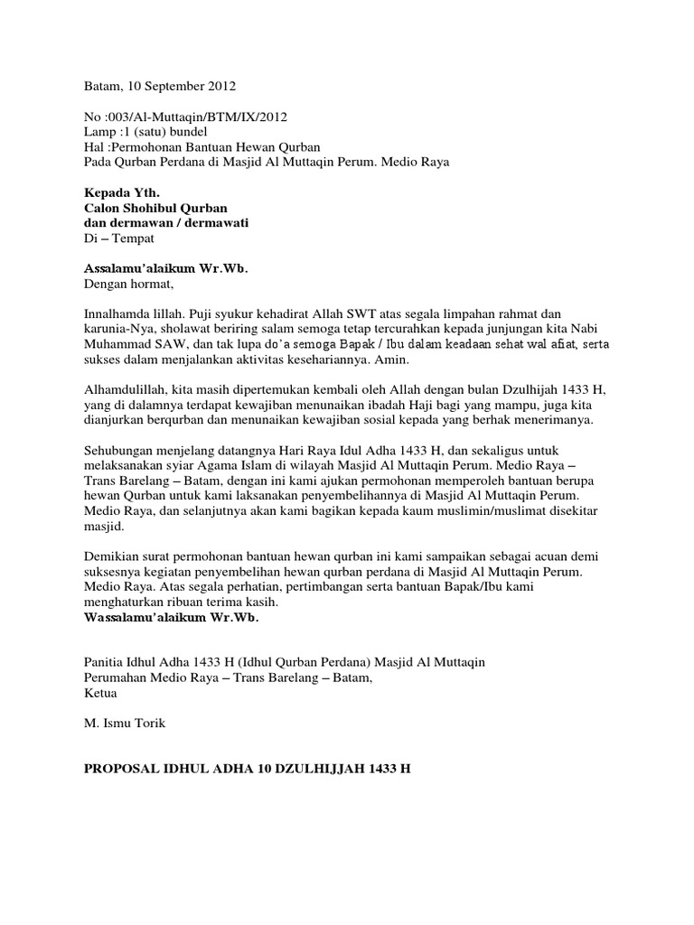 Surat permohonan daging kurban. Surat Penolakan Permohonan 20. PERMOHONAN BANTUAN DAGING KURBAN HARI RAYA IDUL ADHA 10 DZULHIJAH 1430 H 27 NOVEMBER 2009. Pameungpeuk KabBandung bermaksud mengajukan permohonan bantuan daging qurban kepada Yth.