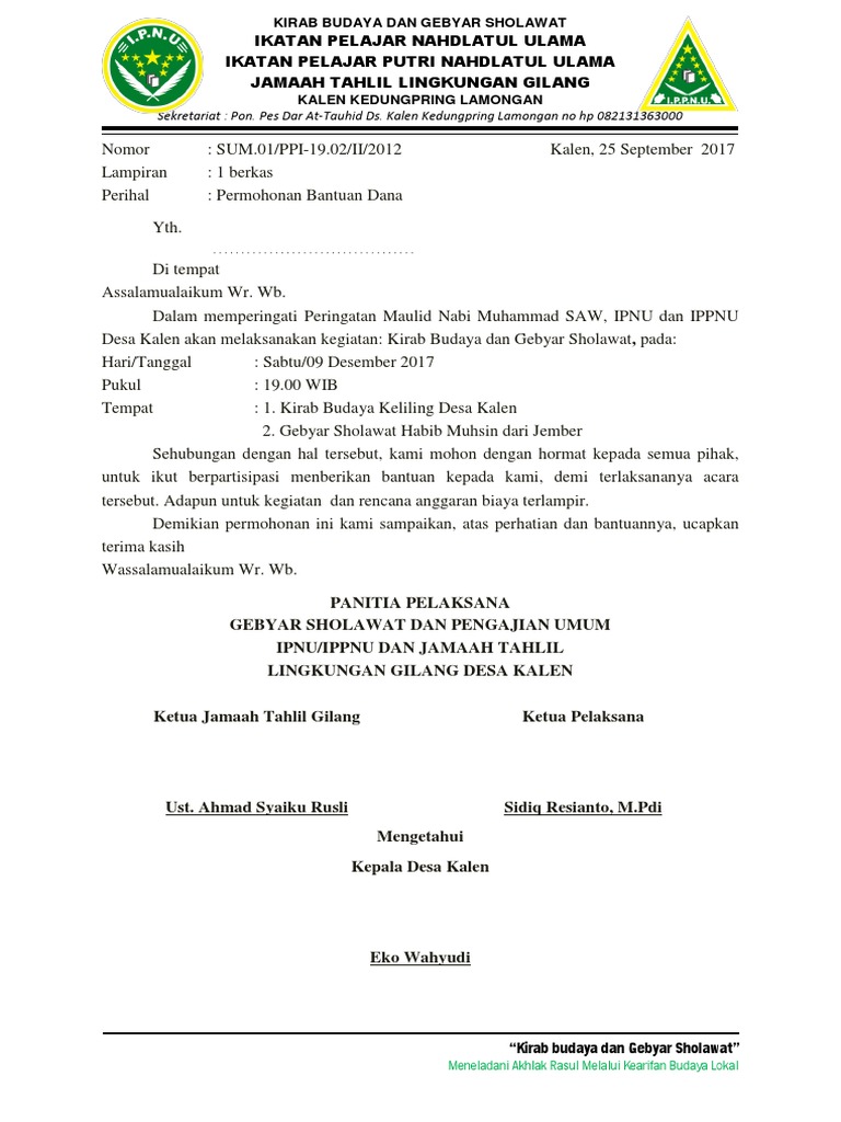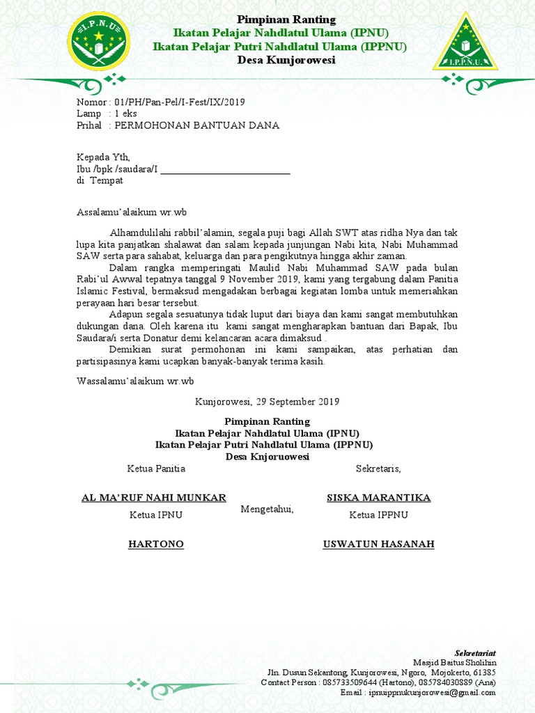 Surat permohonan dana ipnu ippnu. Demikian Surat Permohonan Peminjaman Gawang Futsal ini kami sampaikan atas perhatian dan kerjasamanya kami ucapkan terima kasih. Surat Permohonan Rekomendasi - Pelajar NU Rembang IPNU IPPNU Pimpinan Ranting IPNU Pimpinan Ranting IPPNU Pelajar Rembang Islam. Doc contoh surat mandat doc eko sabrata academia edu.