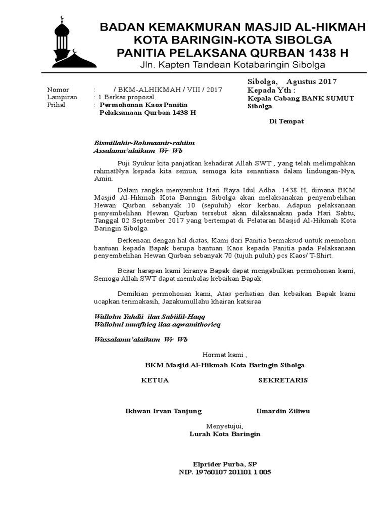 Contoh surat permohonan infaq qurban.