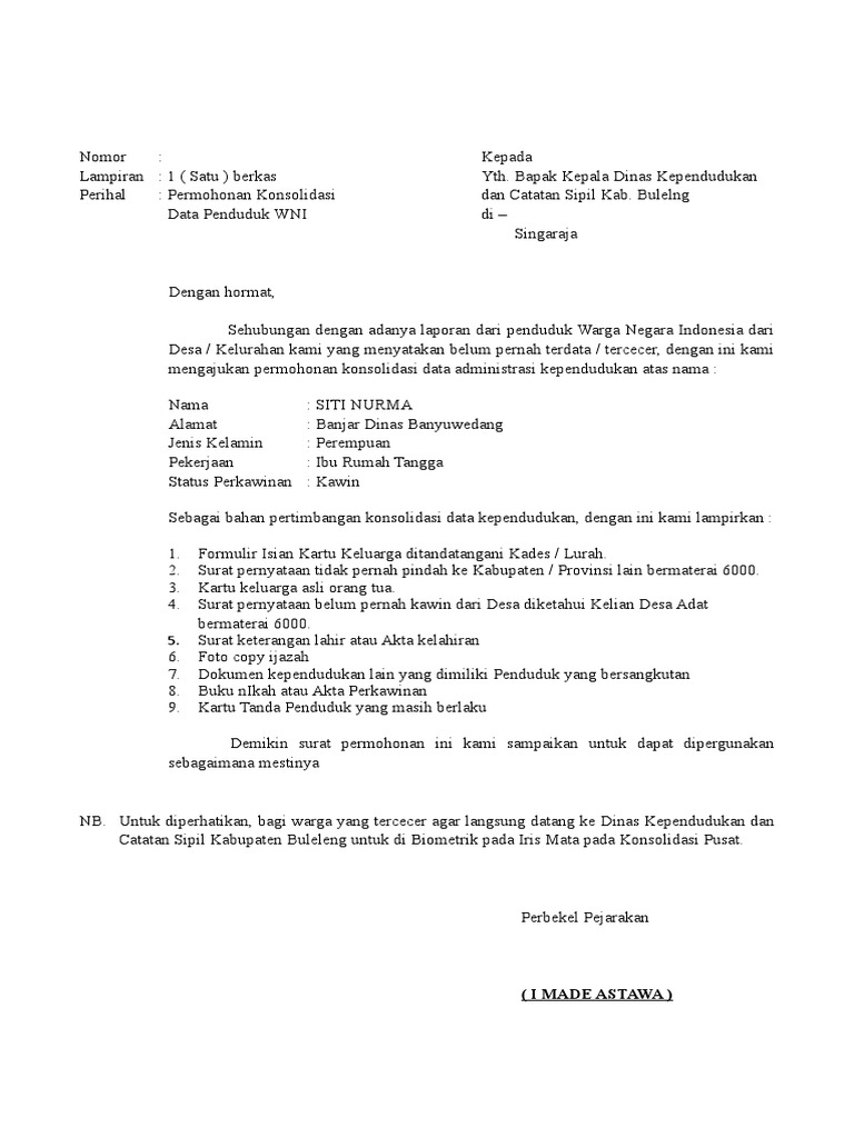 Kutipan Akta KelahiranSurat Keterangan Lahir 2. If you are looking for Contoh Surat Permintaan Data Kependudukan youve come to the right place. Persoalan data penduduk bagi desa sangatlah penting.