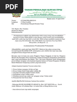 Contoh surat sumbangan masjid have a graphic associated with the other contoh surat sumbangan masjid in addition it will feature a picture of a kind that may be seen in the gallery of contoh surat sumbangan masjid. Salam Fikky Frediandika Seksi Pemberdayaan Remaja Masjid. SURAT PERMOHONAN DONATUR TETAP.