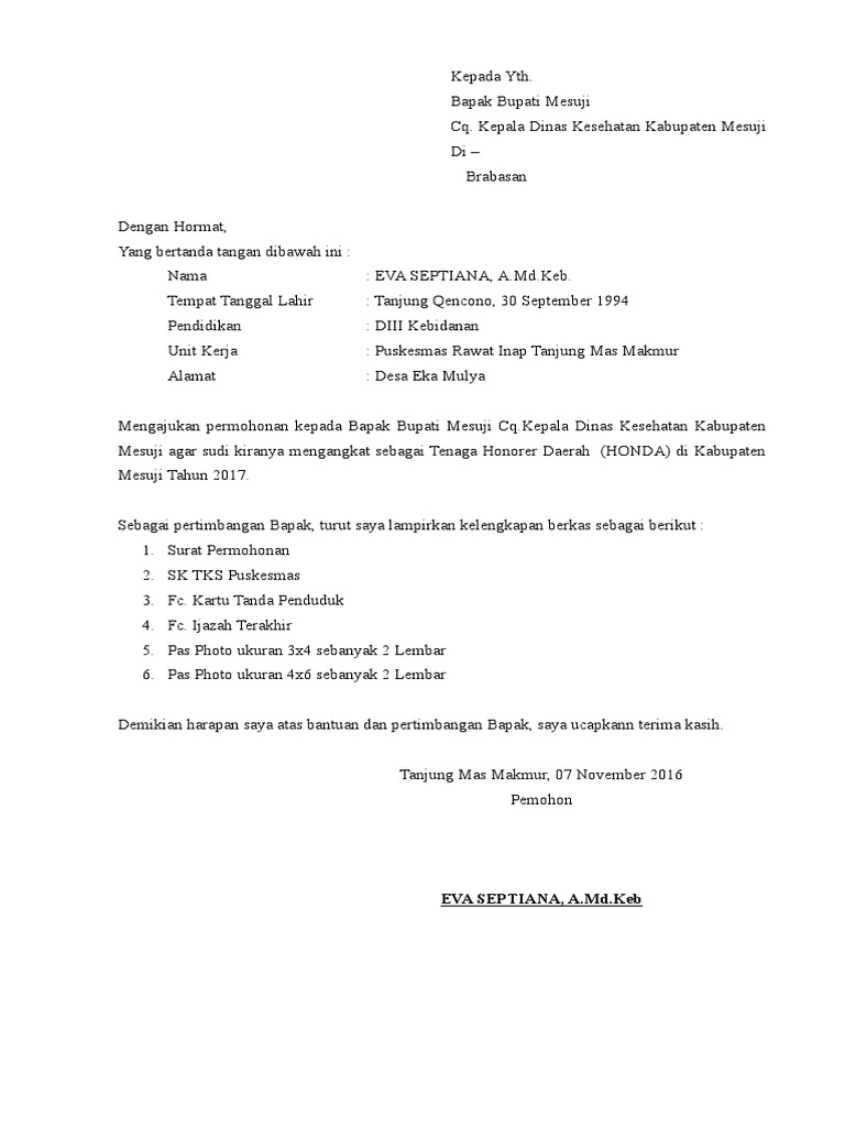 Surat permohonan guru honor daerah. Dengan menjadi seorang honorer di Pemerintahan Daerah atau Pemda kamu bisa sederajat lebih maju dibandingkan dengan orang lain karena dengan menjadi seorang honorer anda telah memiliki pengalaman kerja dan saat diselenggarakan test Penerimaan Pegawai Negeri Sipil anda bisa mengikuti dan masuk dengan mudah dan atau juga bisa-bisa anda termasuk dalam list pengangkatan PNS dari honorer. Contoh Surat Lamaran Kerja Guru Masih ingatkah Anda apa cita-cita di masa kecil Anda dulu. 10 contoh surat lamaran kerja guru cpns honorer dan yayasan oleh ahmad ridlo fadlli robbi diposting pada 4 juli 2019 contoh surat lamaran kerja guru adalah surat yang digunakan untuk melamar pekerjaan dalam instansi pendidikan untuk menjadi pengajar.