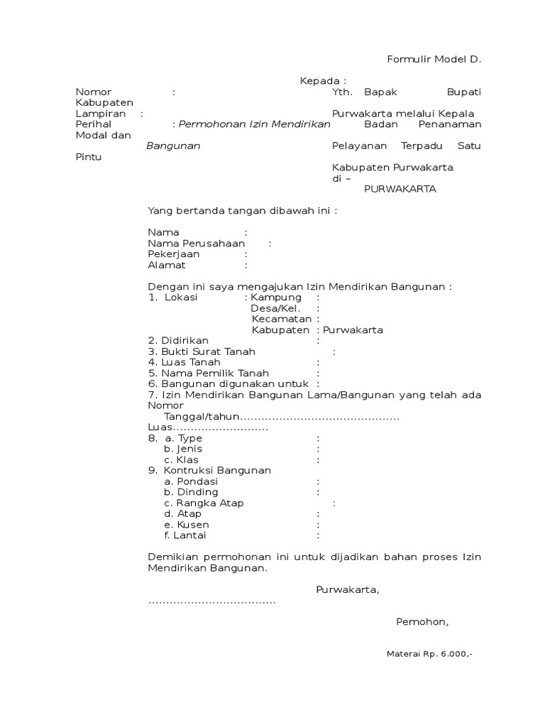 Surat permohonan imb doc. Dengan ini Menyatakaan Bertanggung Jawab atas keamanan untuk Bangunan yang terlanjur di bangun tersebut dalam Surat Permohonan Izin Mendirikan Bangunan IMB yang telah kami buat Alamat Bangunan. Baik itu surat yang dipergunakan oleh perusahaan instansi pemerintahan lembaga organisasi dan perseorangan. Lie Pie Kong Pekerjaan.